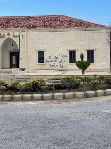 إستفاق أهالي بلدة الطّيبة اليوم على عبارة احتجاجيّة مكتوبة على أحد جدران مبنى البلديّة تشير إلى المحسوبيّات في عمليّة توزيع بدلات الإيواء.