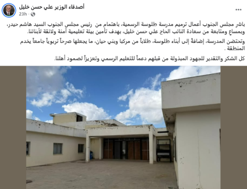 من إعادة تأهيل مبنى بلدية تولين، إلى ترميم مدرسة طلوسة الرسمية، إلى غيرها من المشاريع الّتي تنشرها صفحات مؤيّدة لنائب حركة أمل علي حسن خليل، وتشير فيها إلى أنّها مشاريع ينفّذها مجلس الجنوب بمسعى منه، ما يصبّ في مصلحة الدّعاية الإنتخابيّة لإبن بلدة الخيام، الّذي يبدو أنّه وكل نوّاب الثّنائي سيسعون لاستثمار 8000 مليار الّتي أقرّتها الحكومة لإعادة الإعمار في التّرويج لأنفسهم انتخابيًّا لدى البيئة الغاضبة ممّا آلت إليه الأمور، وخصوصًا لدى أبناء الحافّة الأماميّة، الّذين لا يزالون في حال نزوح خارج قراهم المدمّرة ومنازلهم المهدّمة.